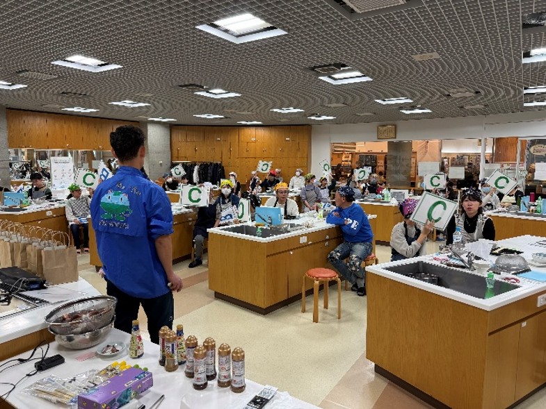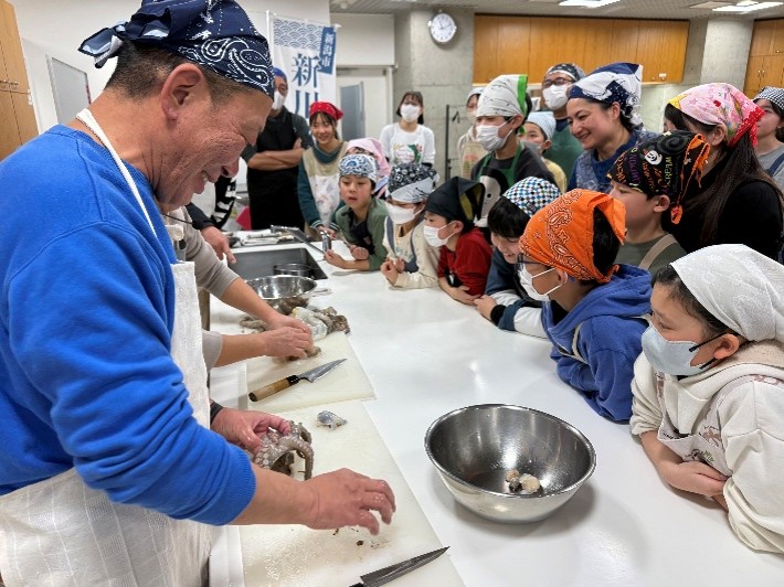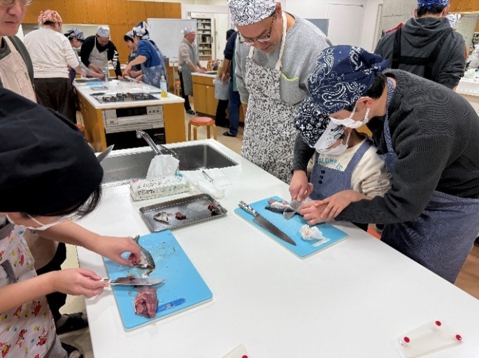 新川漁港活性化協議会では、漁港周辺の新潟市西区の商店主らを講師に漁港で獲れた旬の魚介を調理し、漁港やそこで獲れる魚に興味をもってもらおうとイベントを企画しました。
