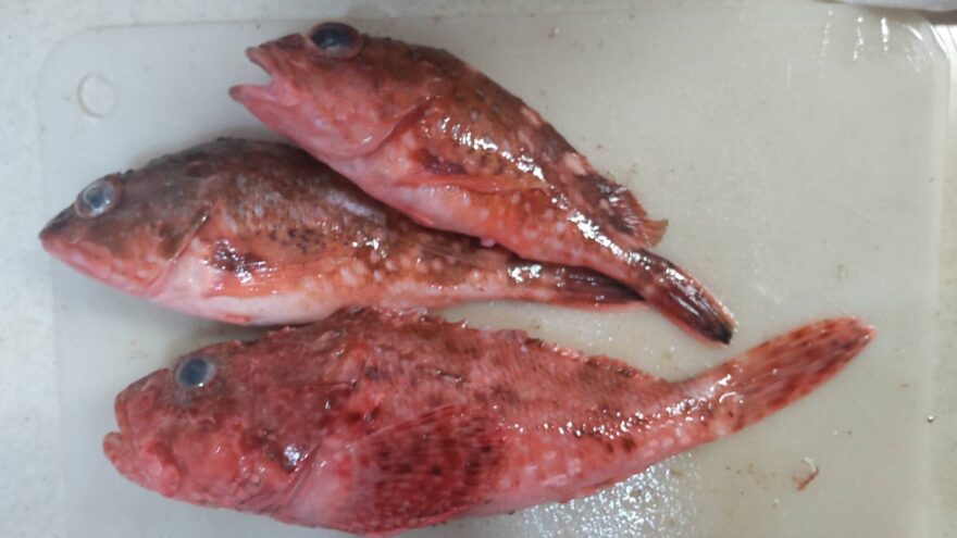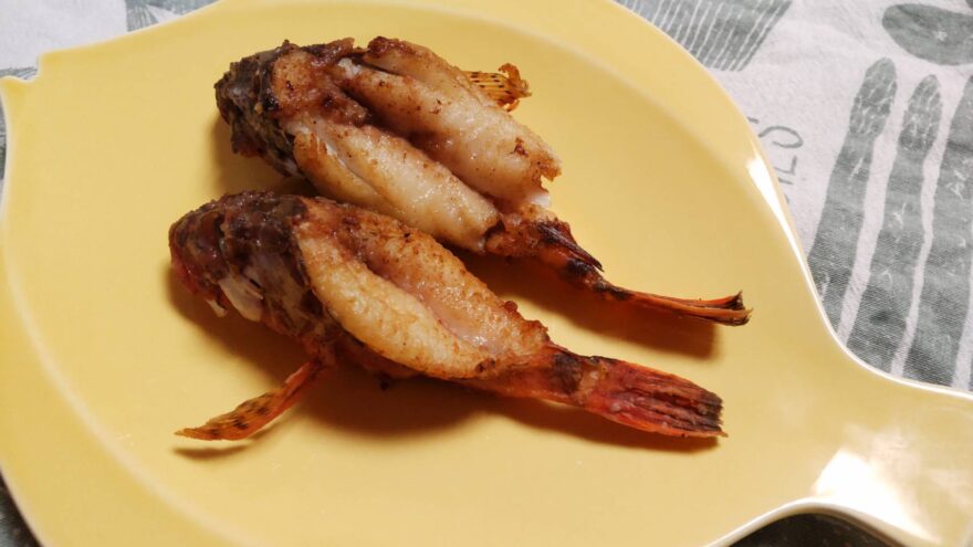 小さいカサゴは唐揚げに、オニカサゴは刺身にしました。